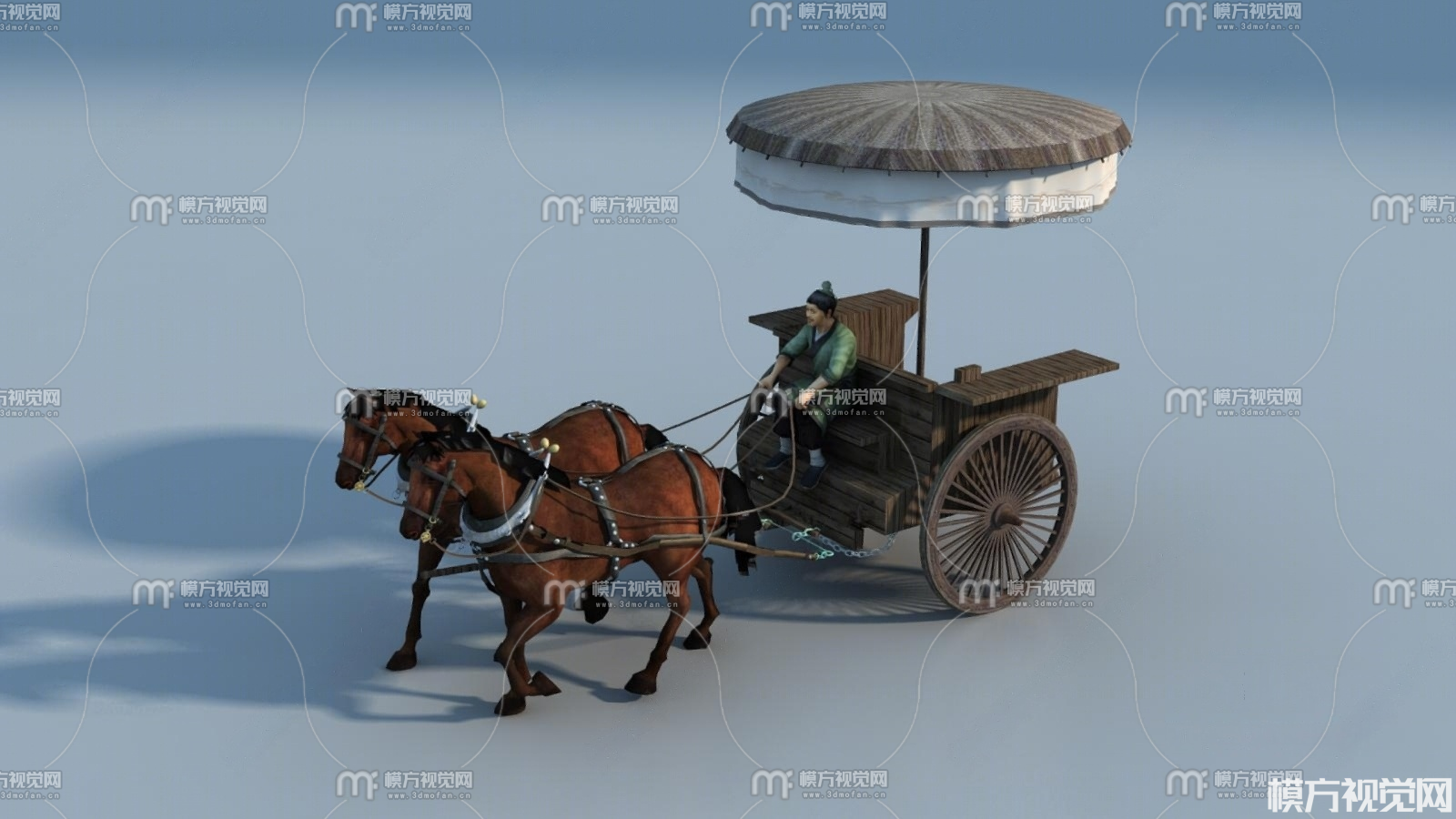 中式马车3D模型(ID:0035862)
