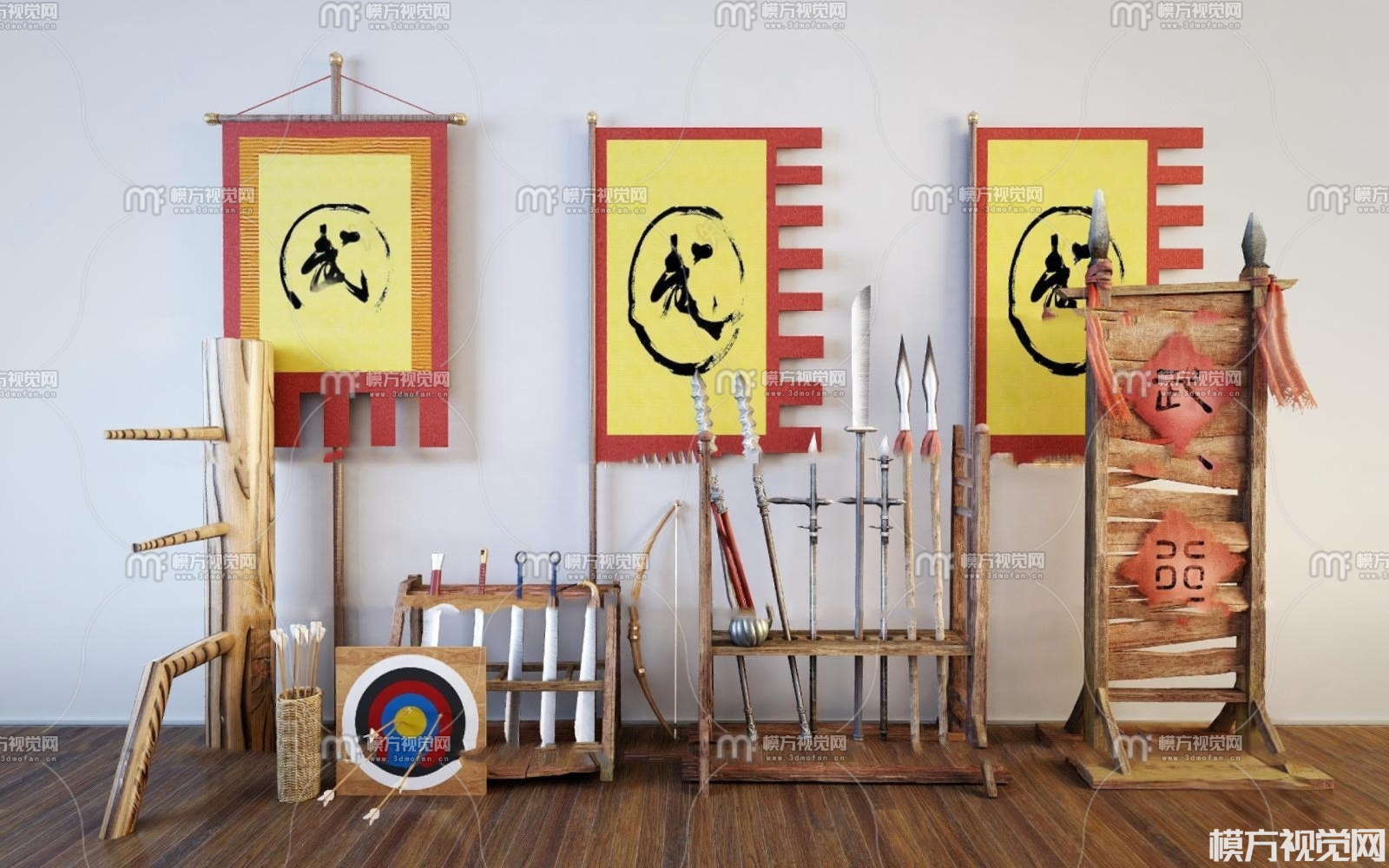 中式武馆兵器器材组合3D模型(ID:0035891)