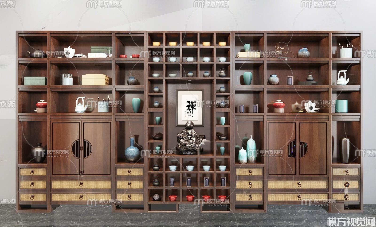 新中式禅意装柜组合3D模型(ID:0035940)
