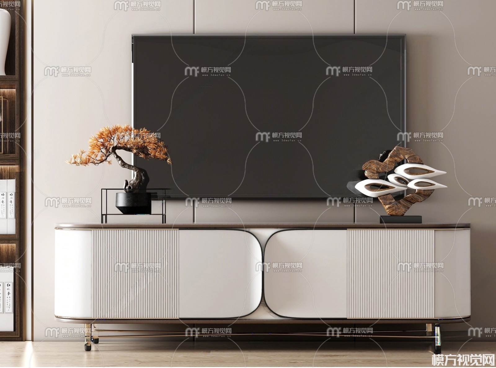 新中式电视柜3D模型(ID:0035960)