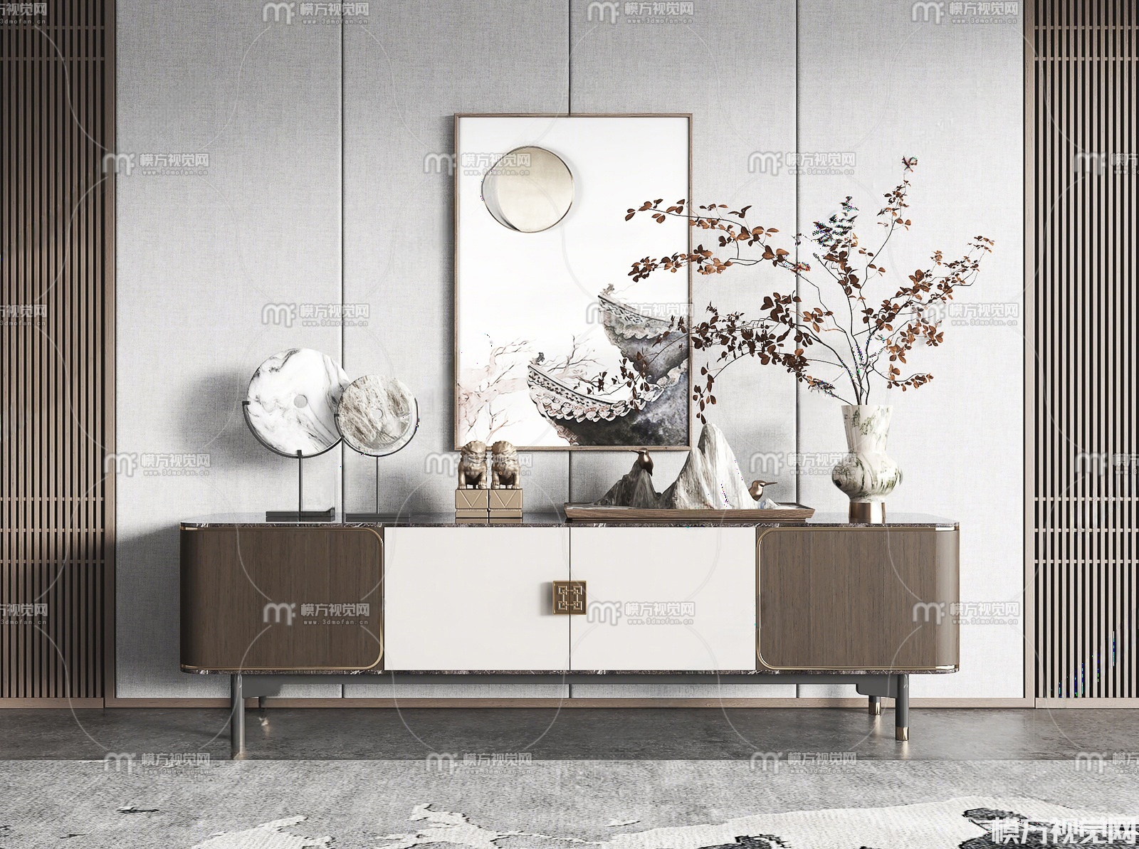 新中式电视柜3D模型(ID:0035969)