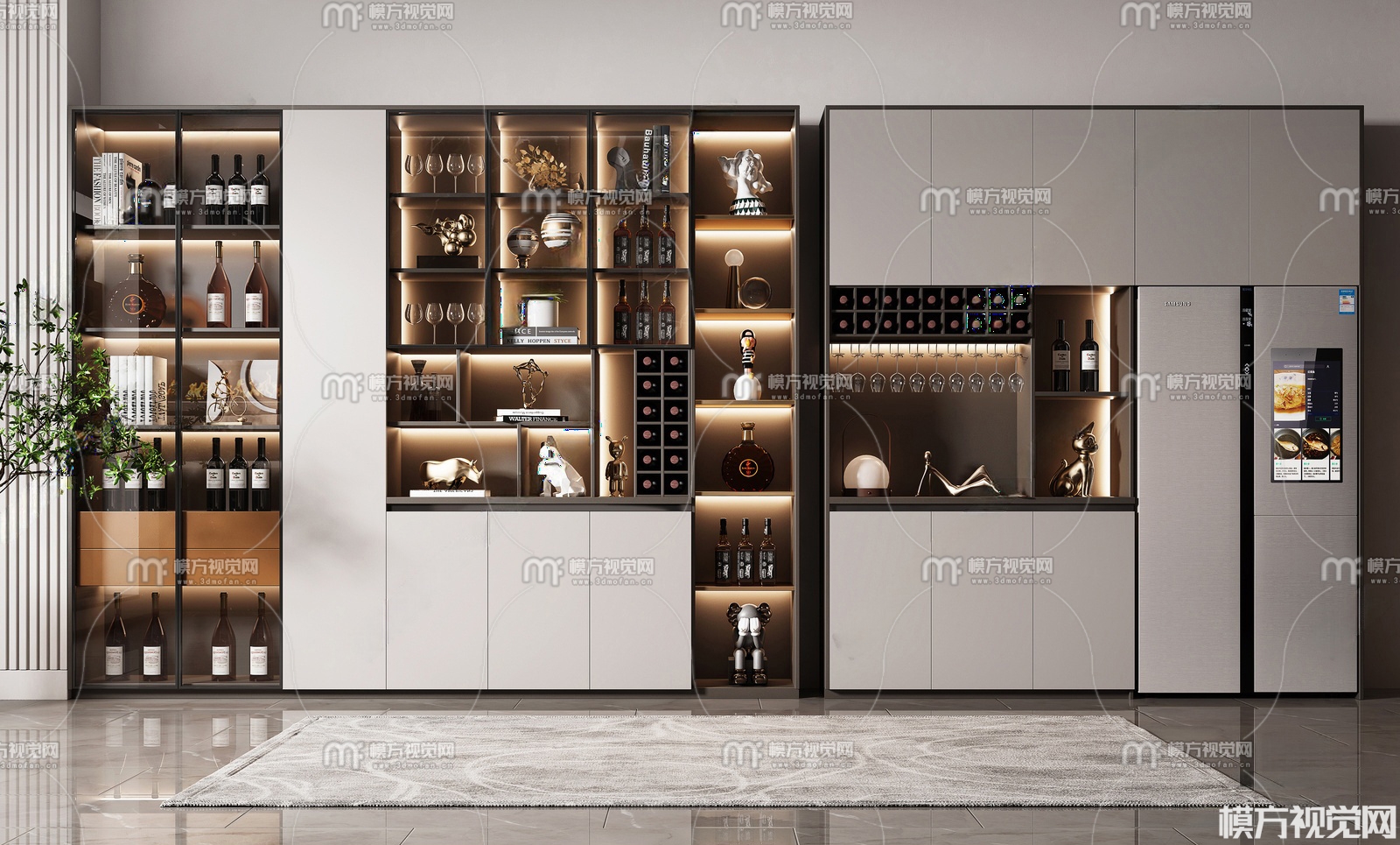 现代酒柜组合3D模型(ID:0036010)