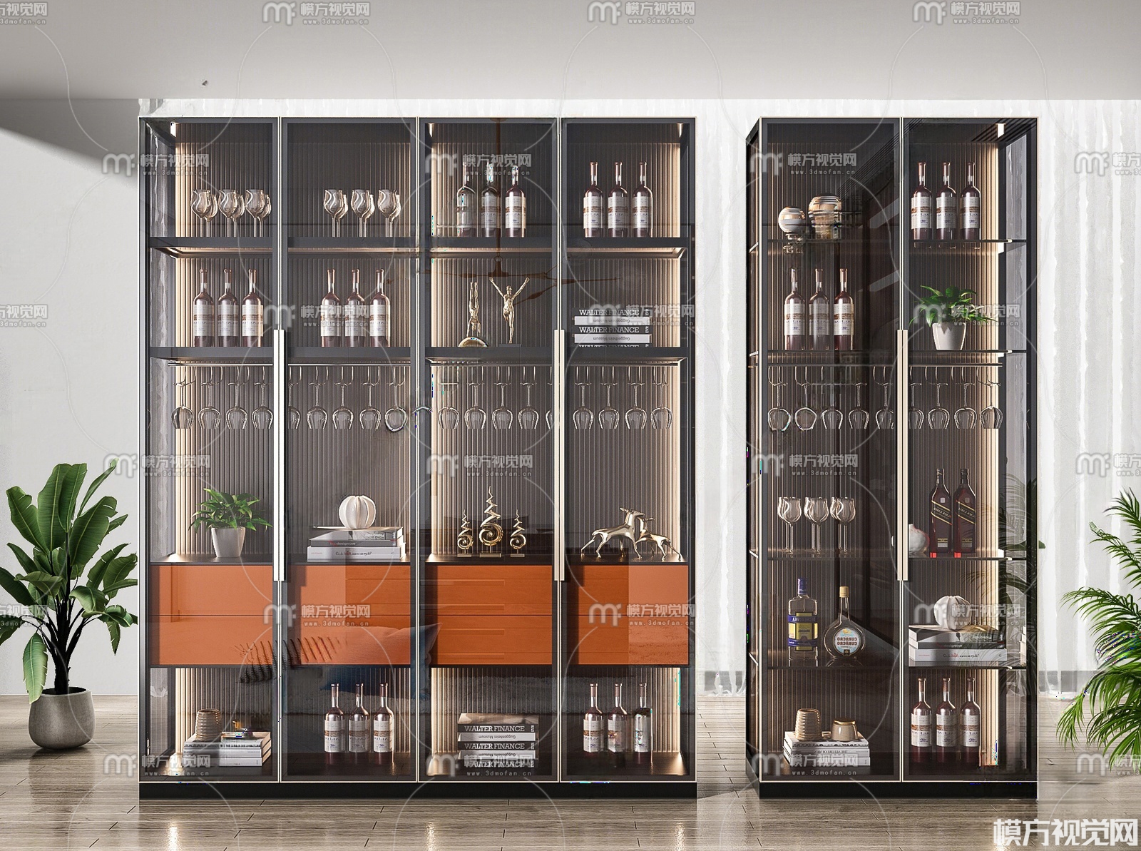 现代玻璃酒柜组合3D模型(ID:0036017)