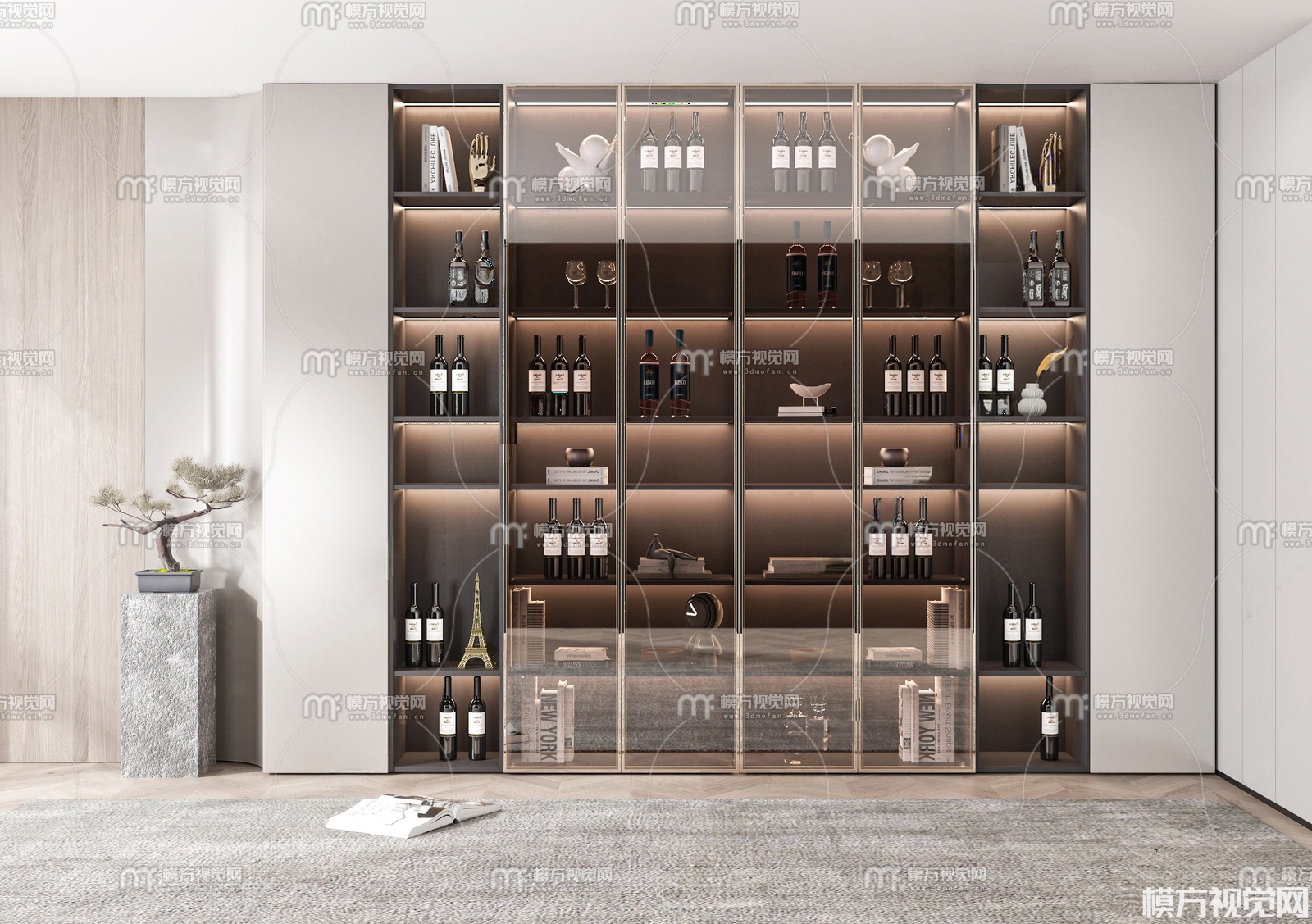 现代轻奢玻璃酒柜3D模型(ID:0036021)