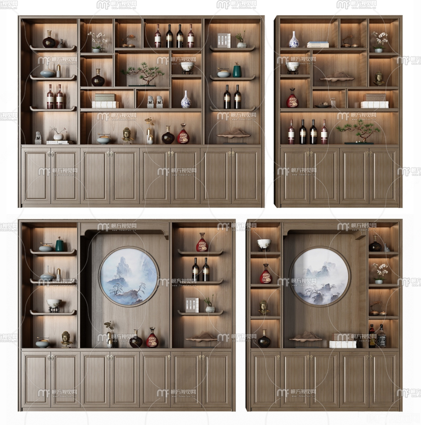 新中式酒柜组合3D模型(ID:0036041)