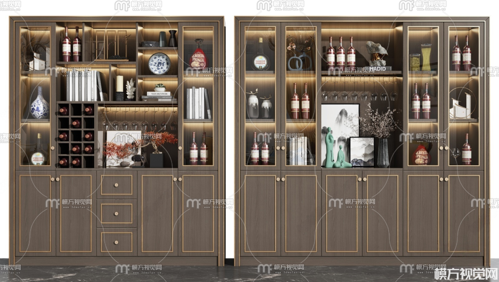 新中式酒柜组合3D模型(ID:0036042)