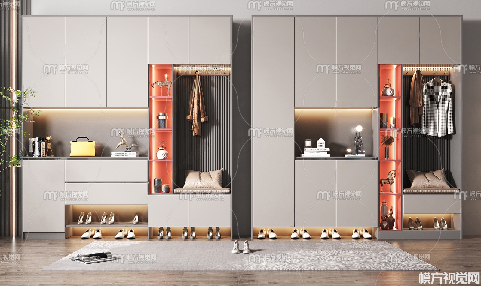 现代鞋柜组合3D模型(ID:0036067)