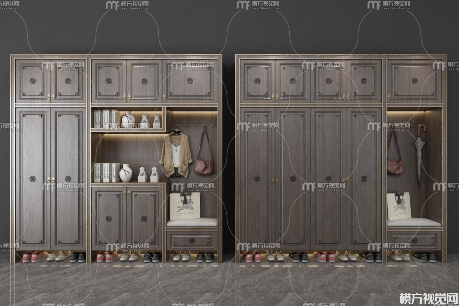 新中式鞋柜组合3D模型(ID:0036104)