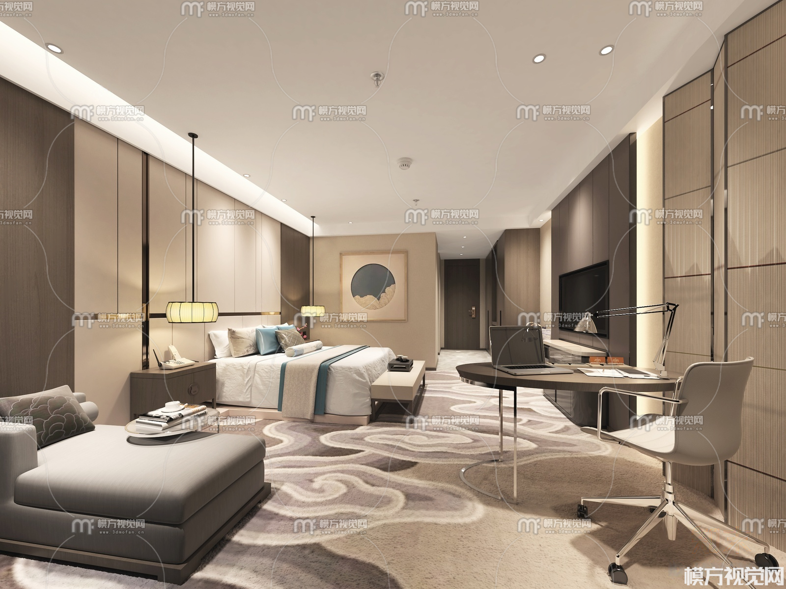新中式酒店客房3D模型(ID:0003615)
