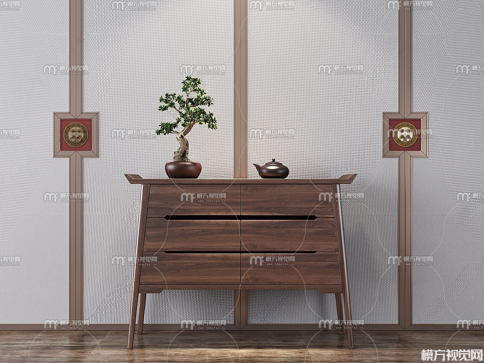 新中式玄关柜3D模型(ID:0036174)