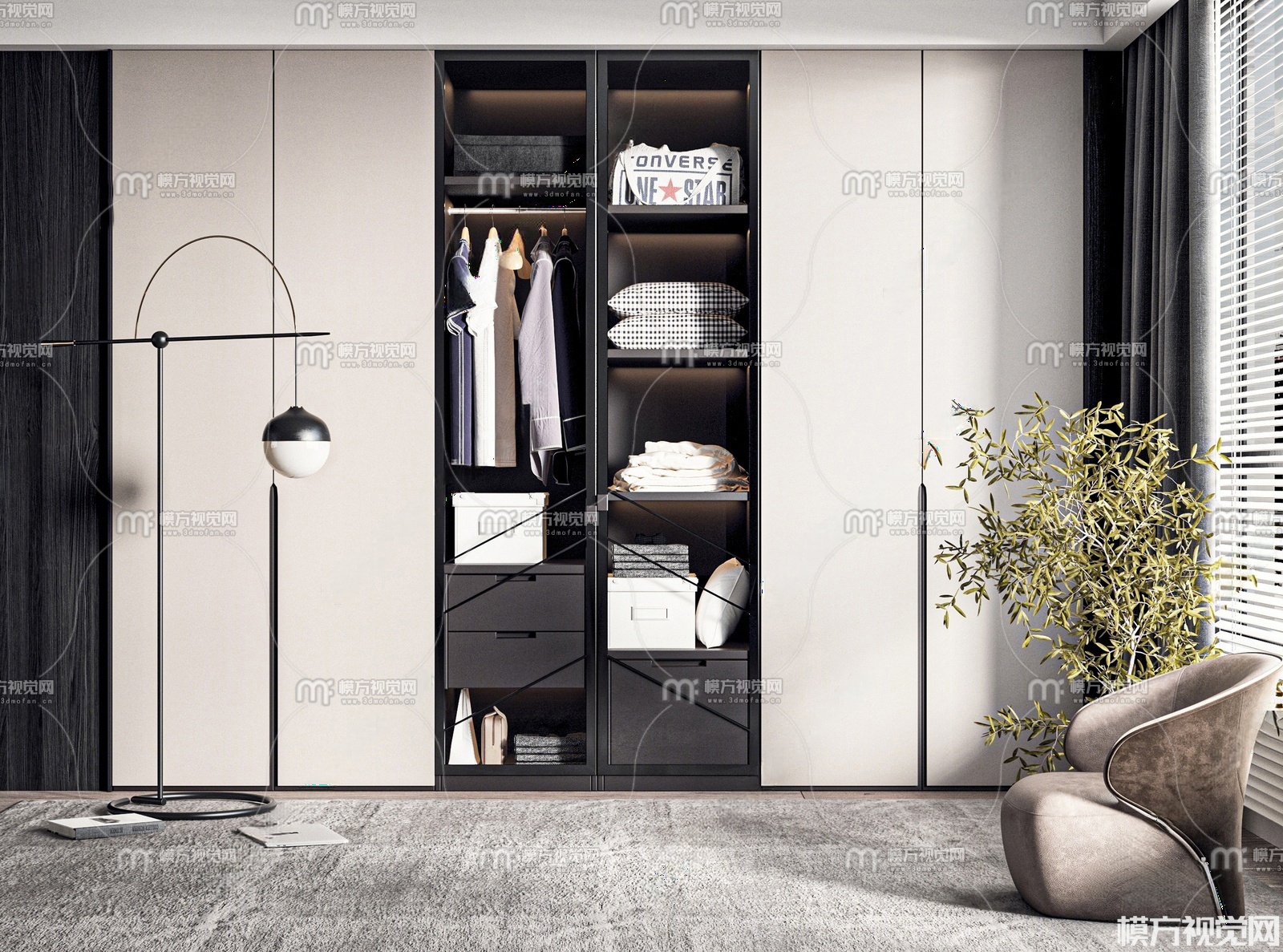 现代衣柜组合3D模型(ID:0036188)