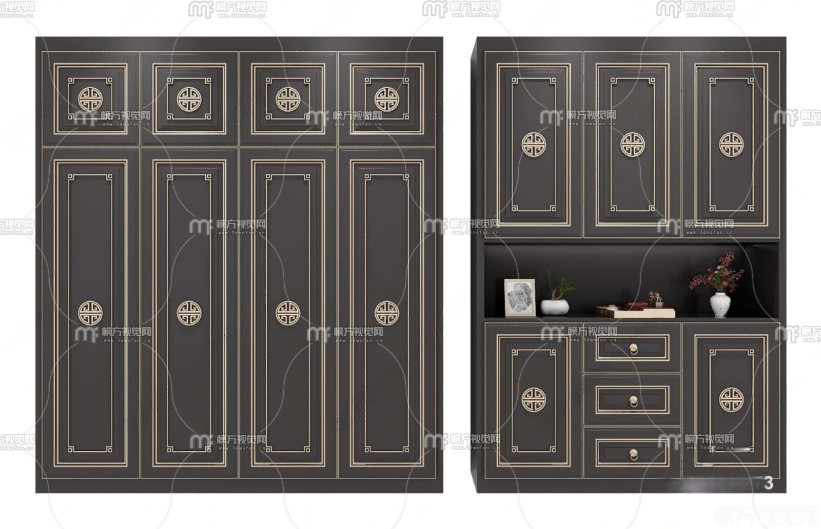 新中式鞋柜衣柜组合3D模型(ID:0036224)