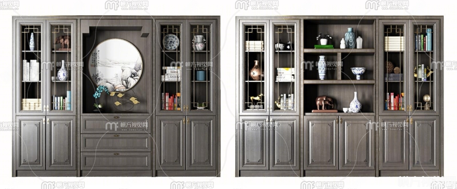 新中式书柜组合3D模型(ID:0036257)