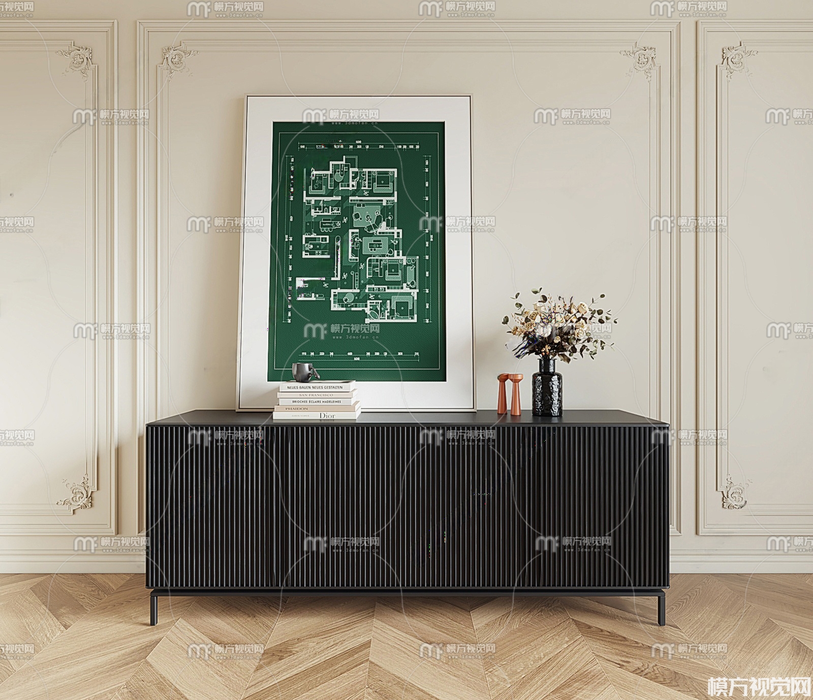 现代玄关柜 花瓶 装饰画3D模型(ID:0036300)