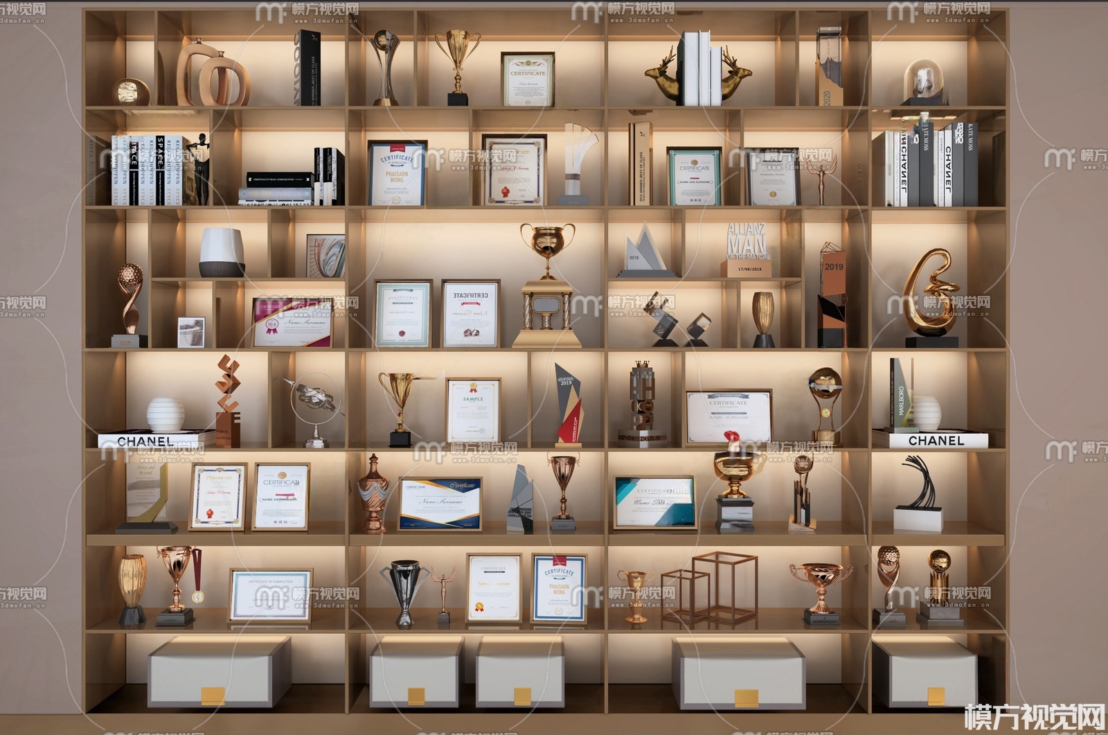 现代装饰柜 证书 奖杯3D模型(ID:0036302)