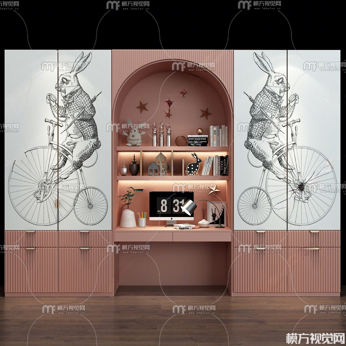 现代书桌 装饰柜3D模型(ID:0036311)