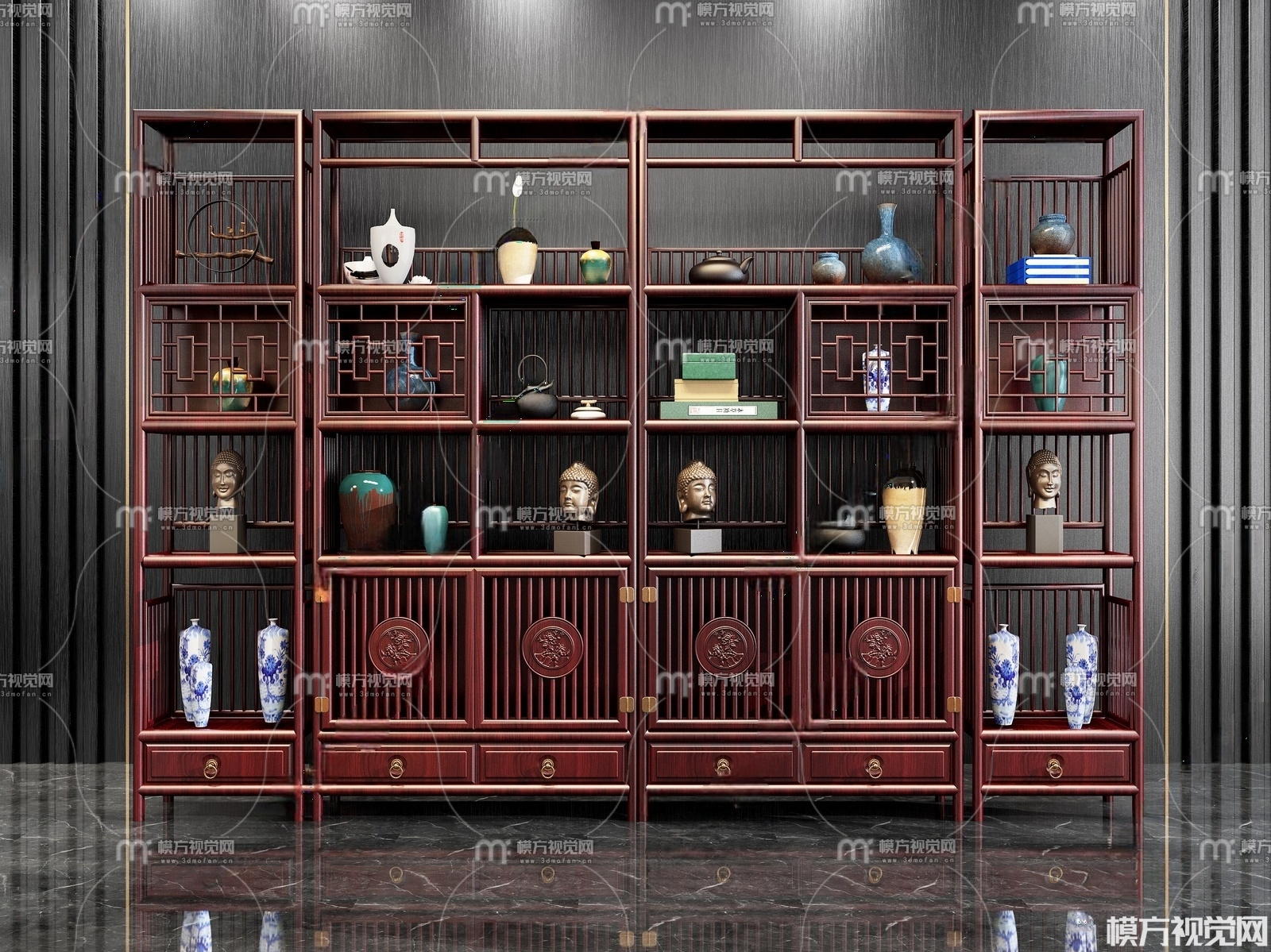 新中式博古架3D模型(ID:0036329)