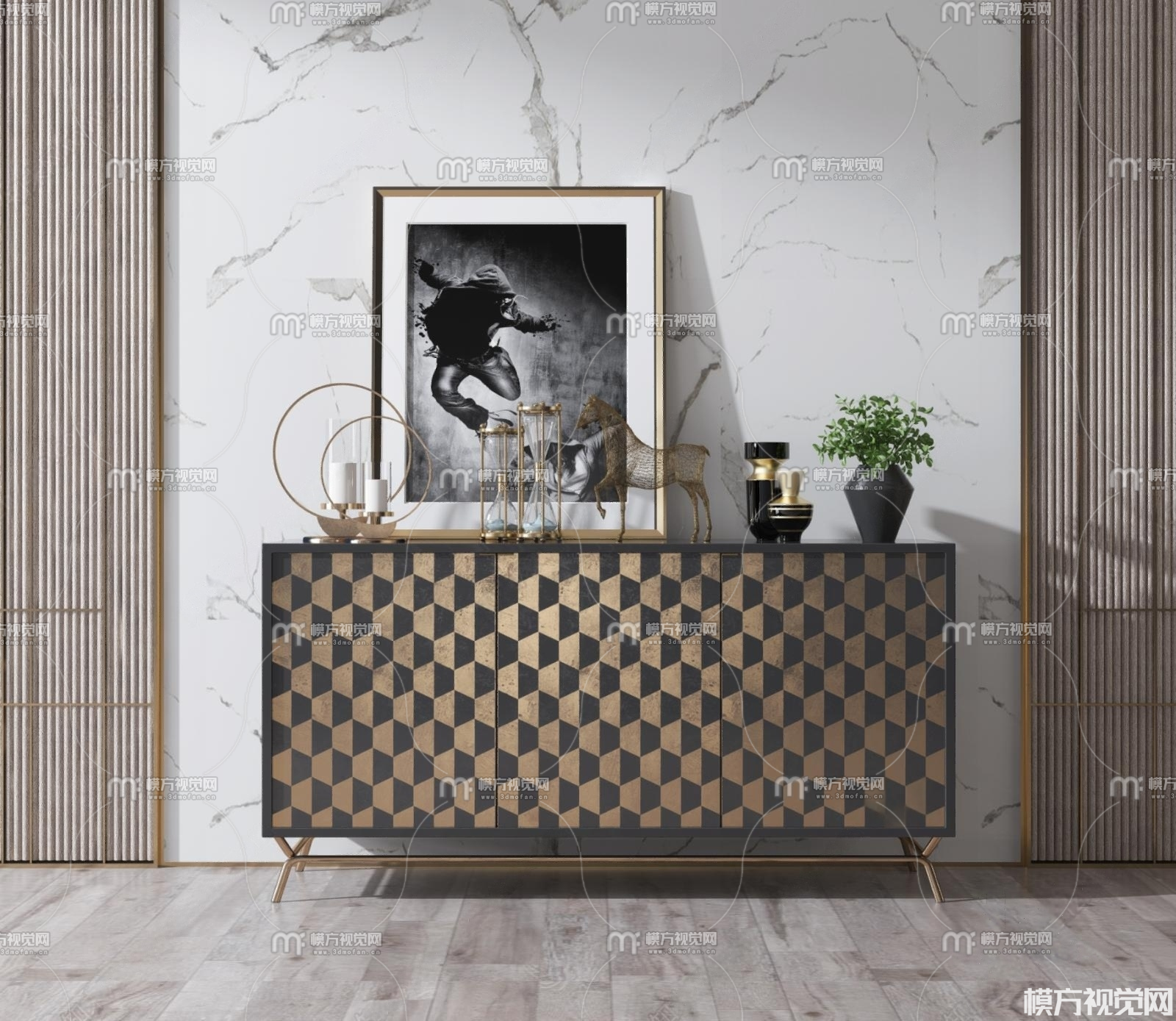 现代轻奢边柜玄关柜摆件组合3D模型(ID:0036348)