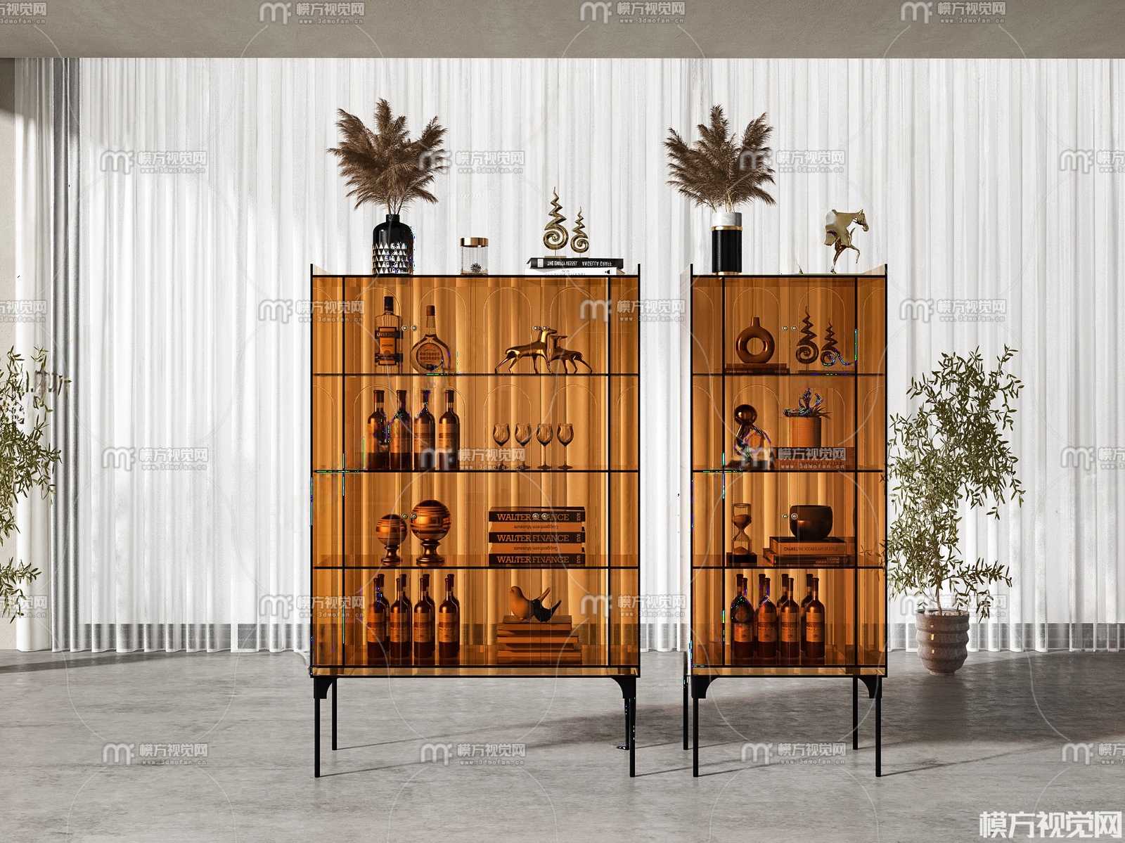 现代亚克力酒柜餐边柜3D模型(ID:0036355)