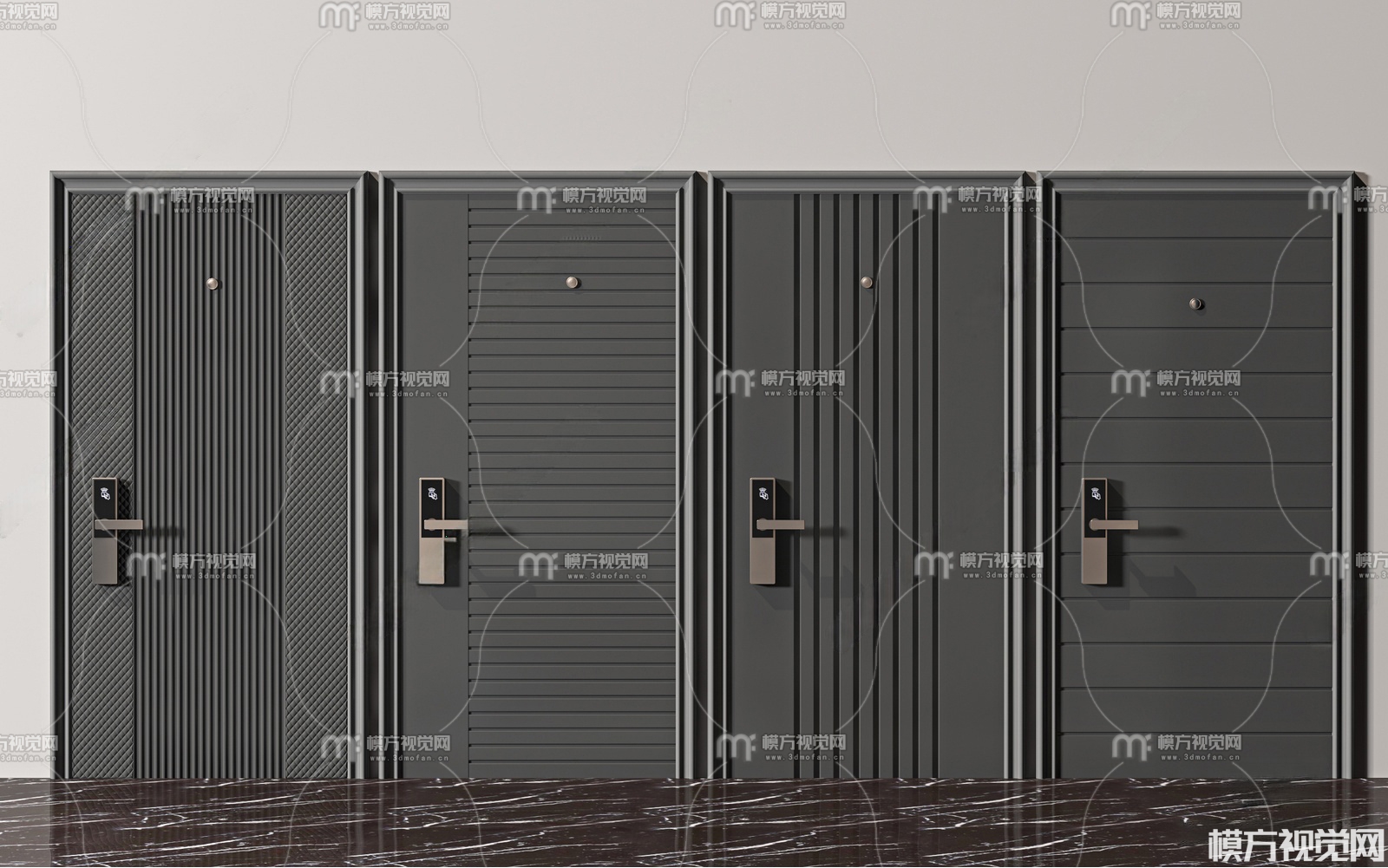 现代防盗门组合3D模型(ID:0036369)