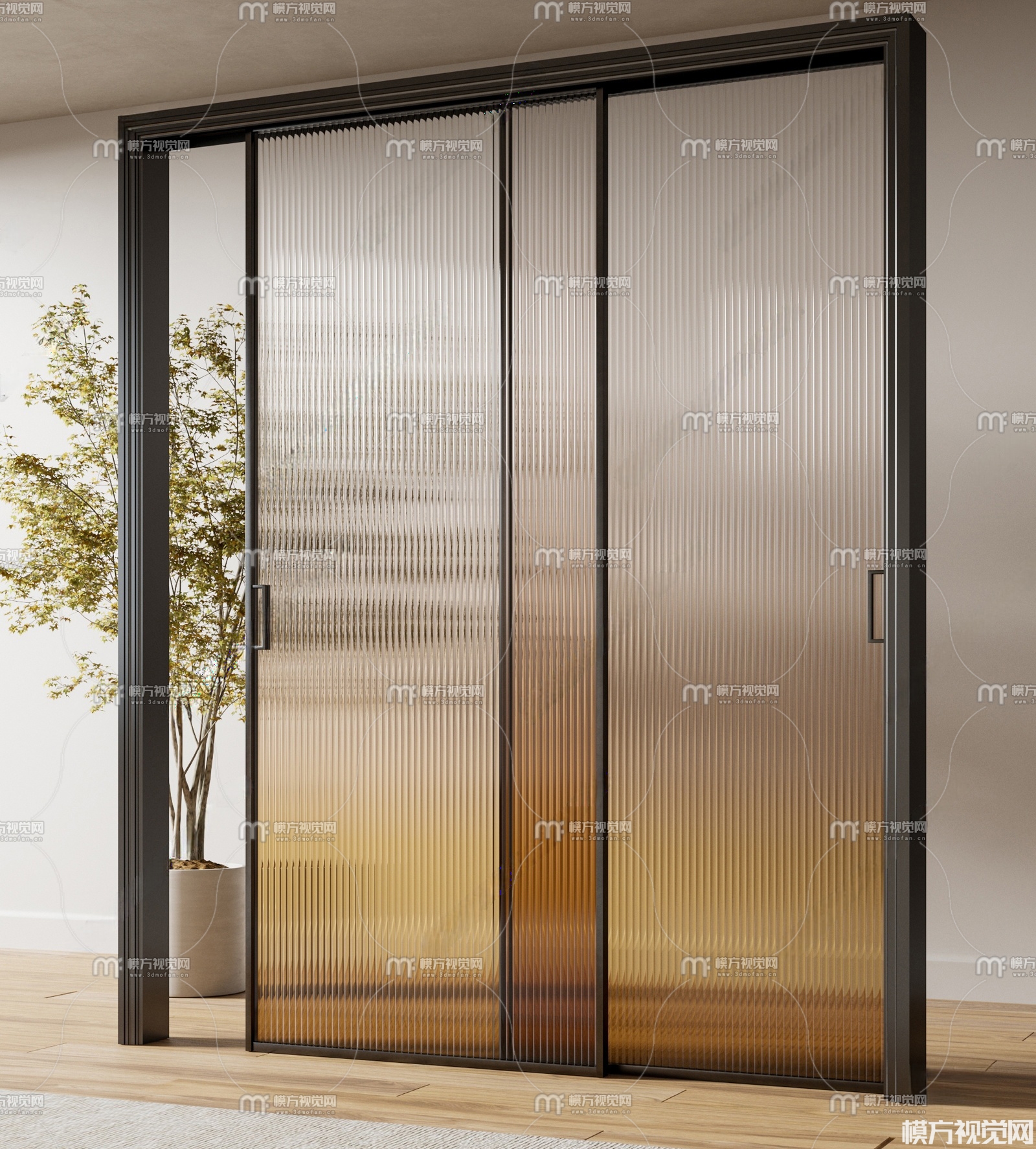现代渐变长虹玻璃移门3D模型(ID:0036375)