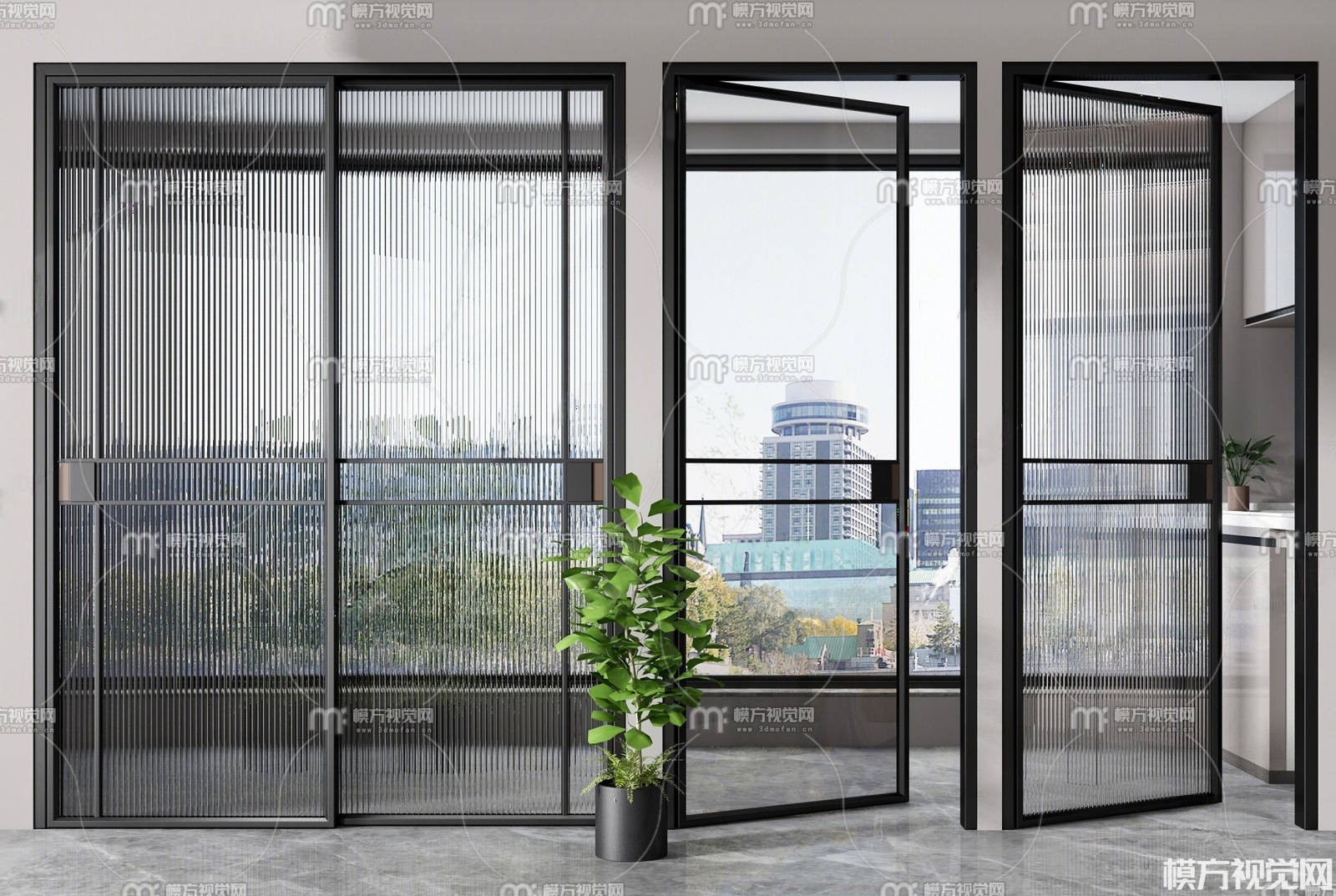 现代长虹玻璃推拉门3D模型(ID:0036412)