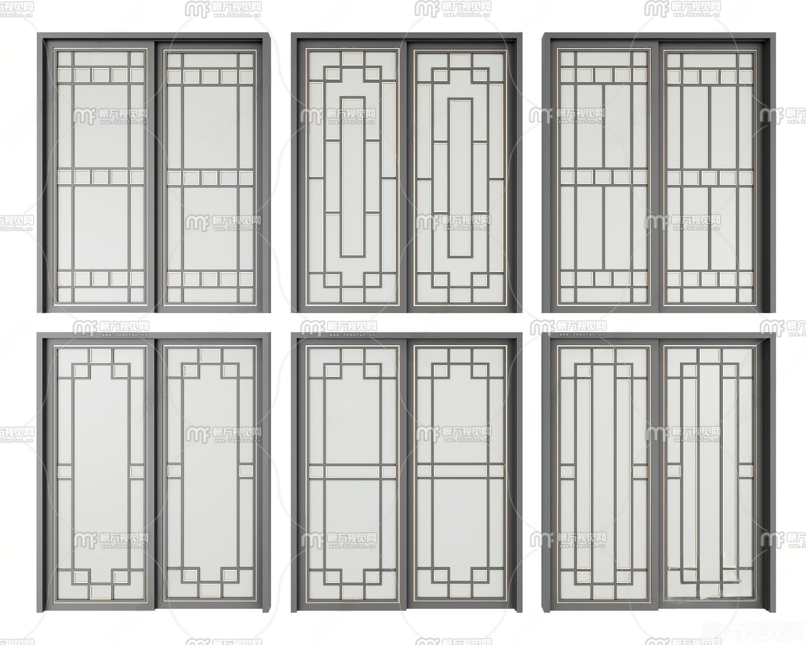 新中式移门组合3D模型(ID:0036450)