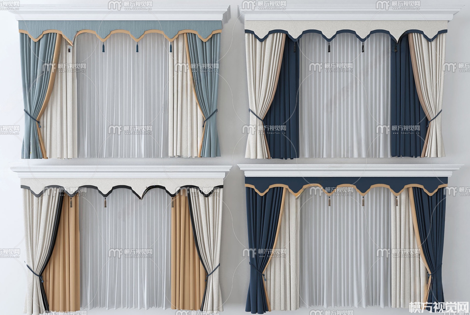 新中式窗帘组合3D模型(ID:0036473)