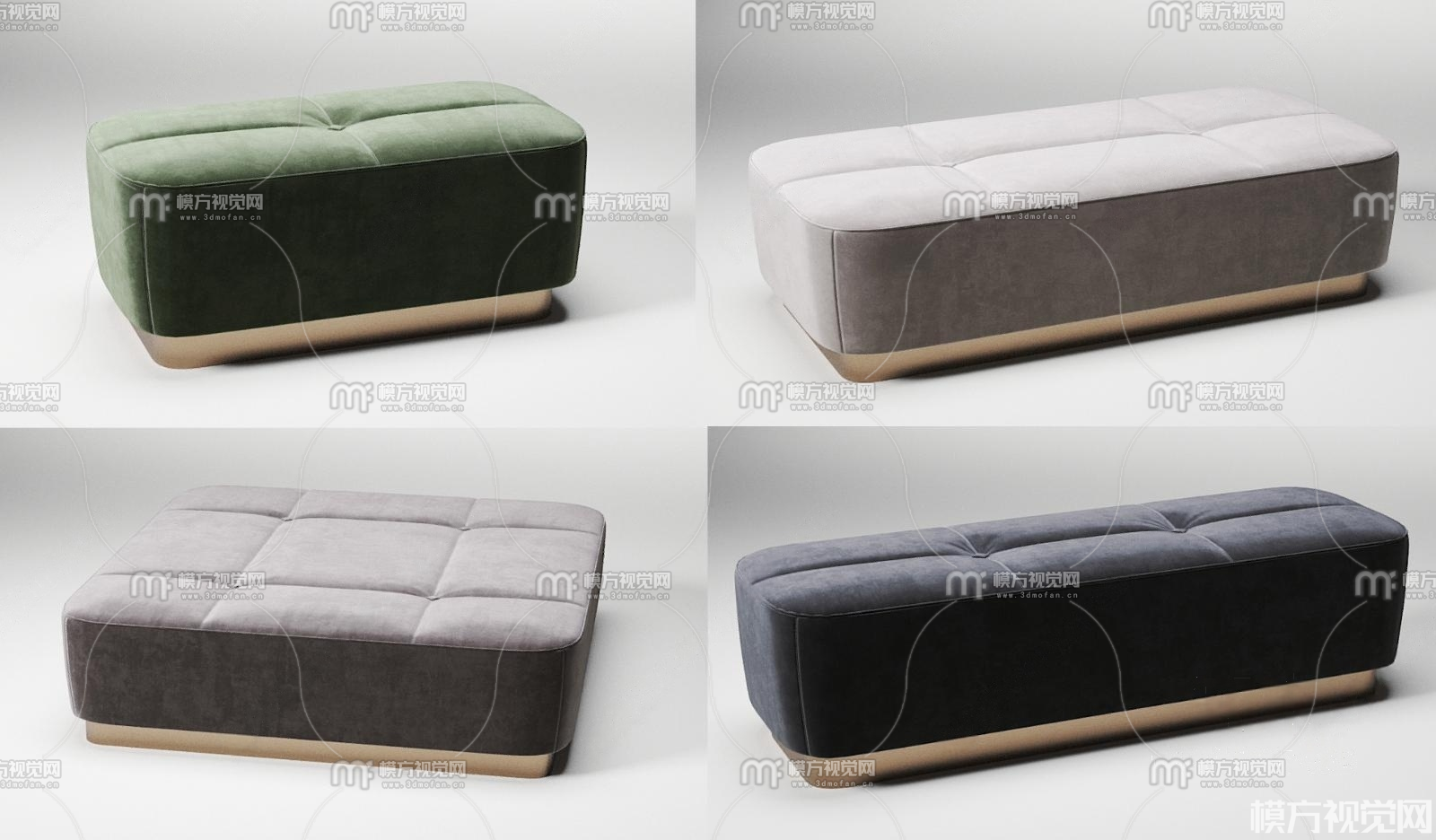 现代轻奢床尾凳脚踏组合3D模型(ID:0036495)