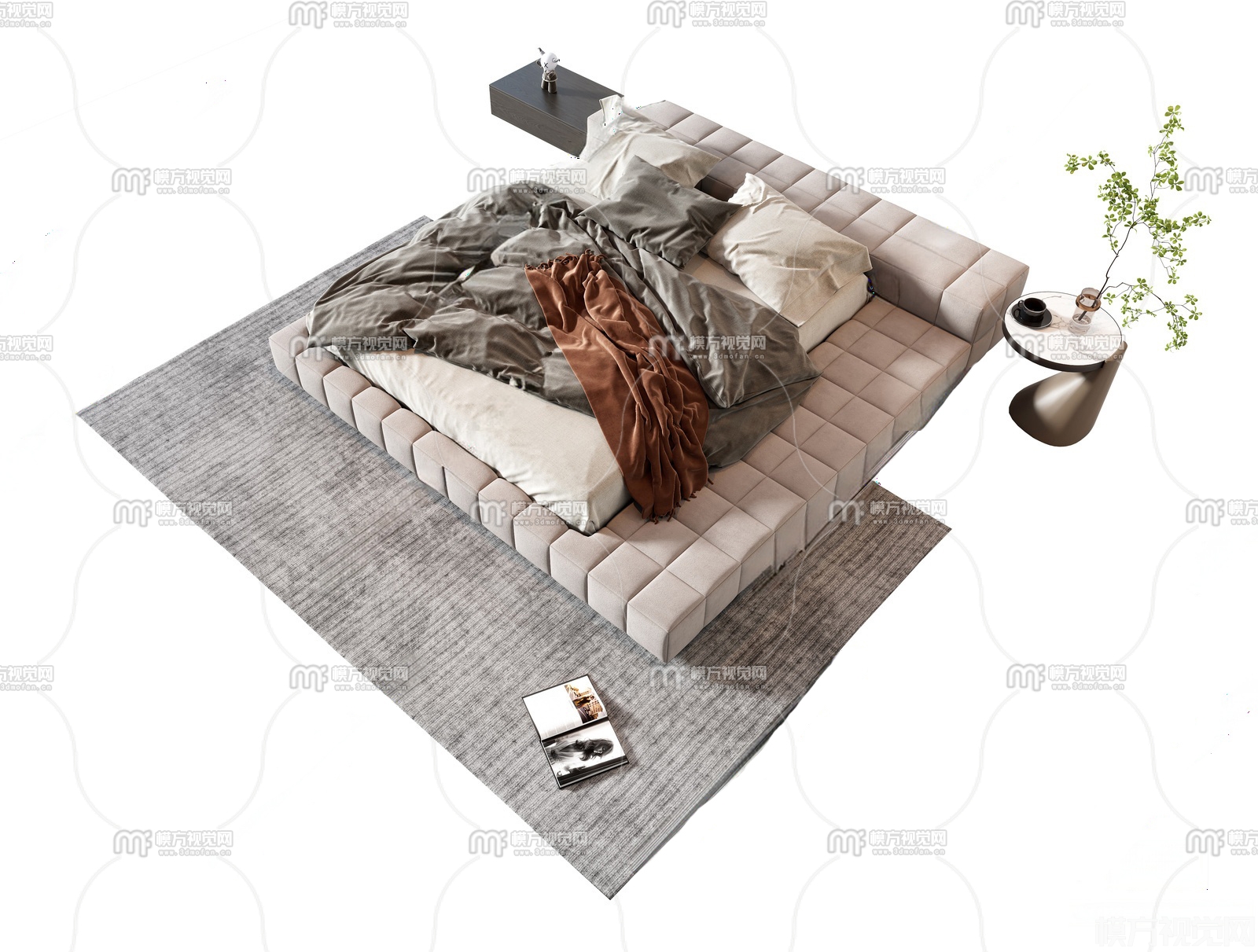 现代双人床33D模型(ID:0036534)