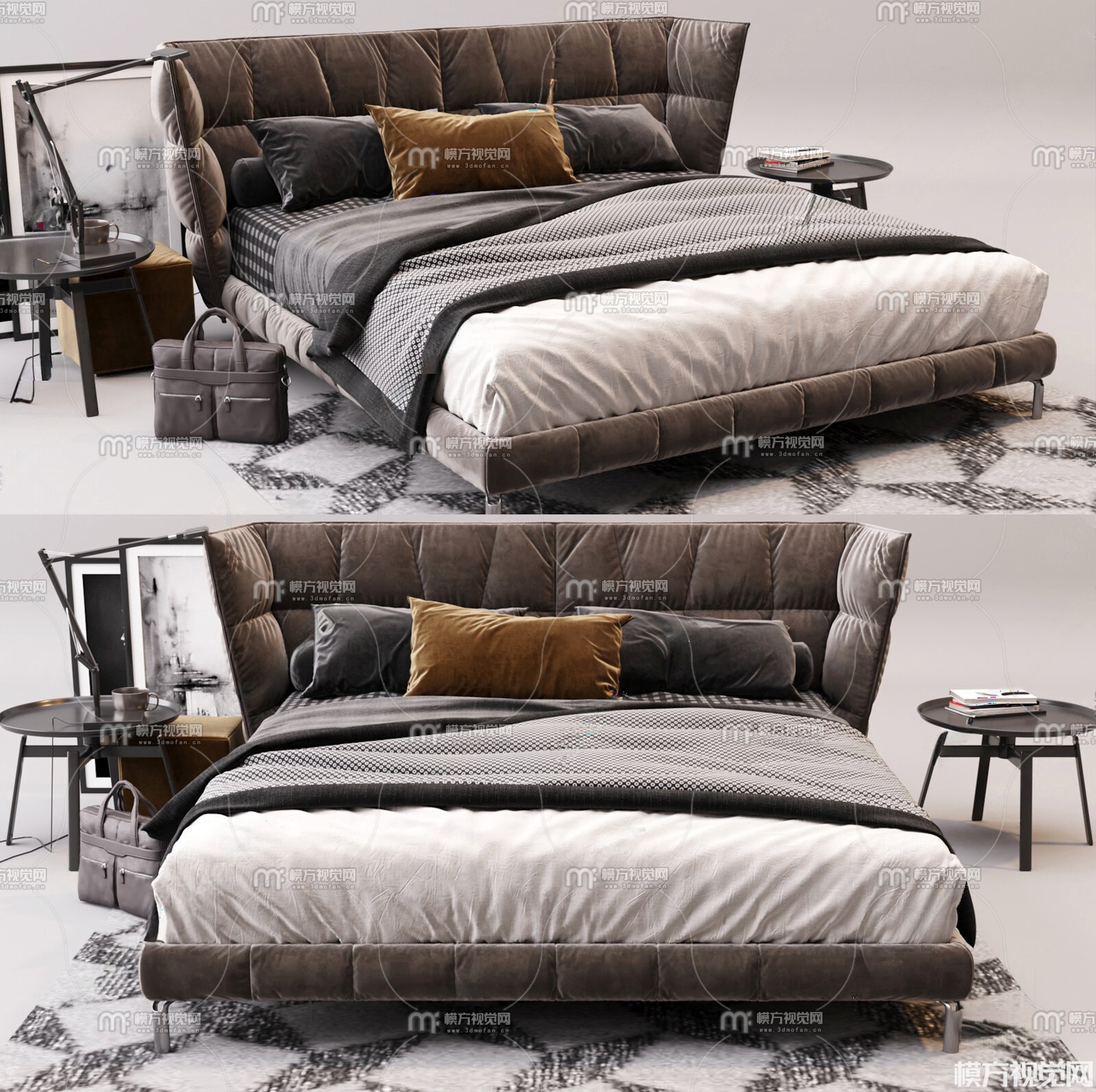 现代双人床33D模型(ID:0036535)