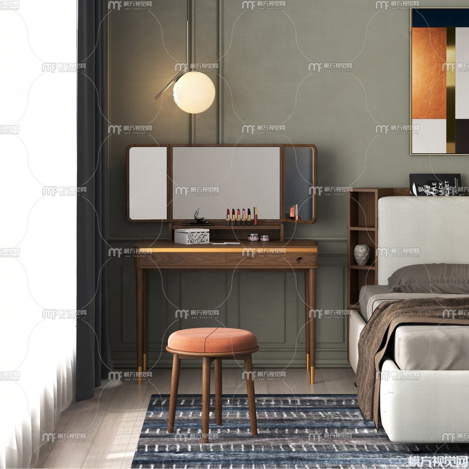现代双人床梳妆台3D模型(ID:0036551)