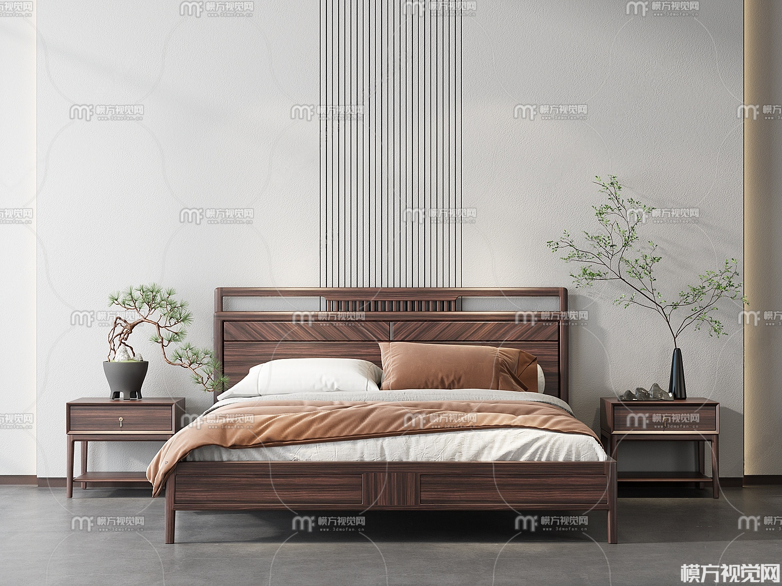 新中式双人床3D模型(ID:0036562)