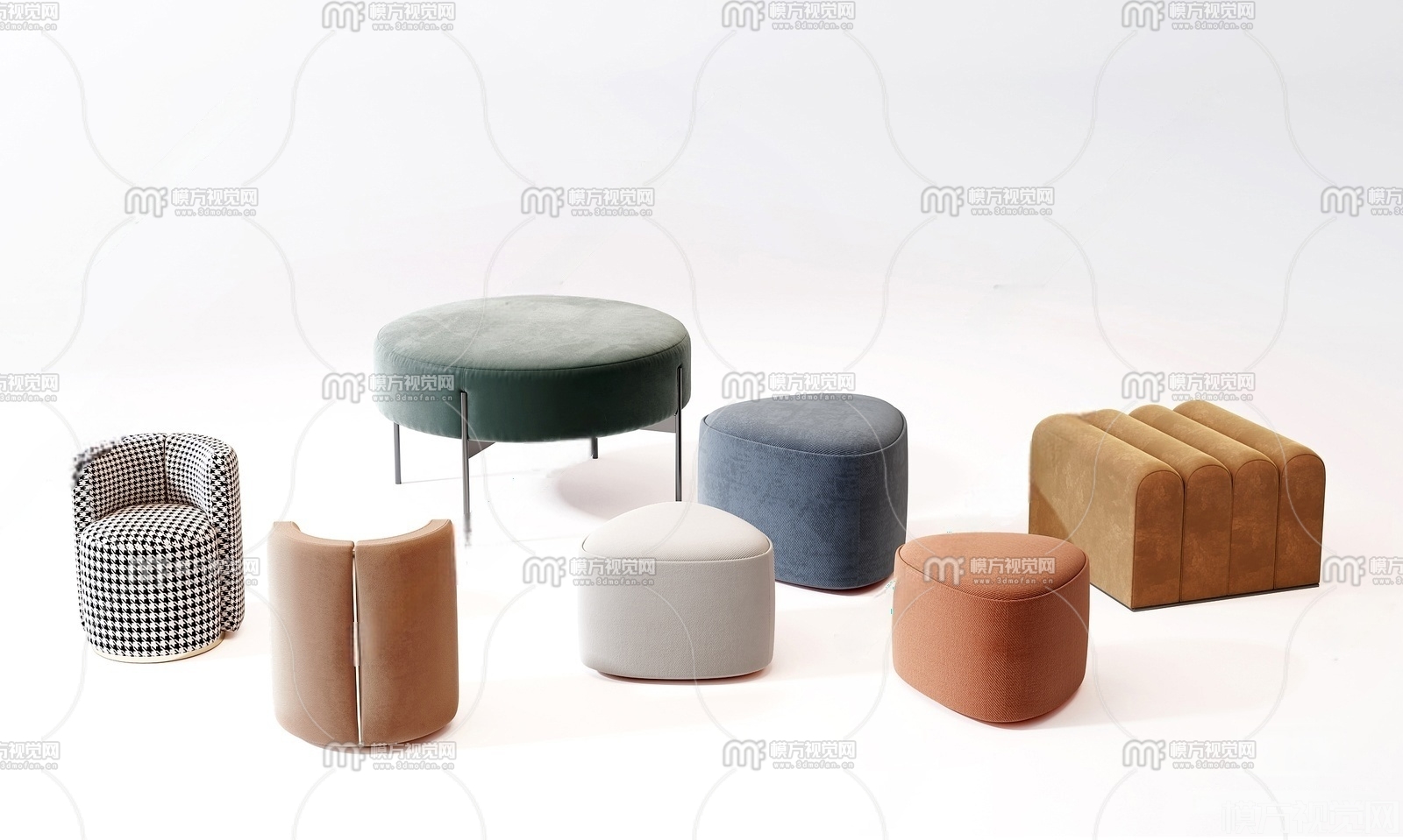 现代沙发脚蹬组合3D模型(ID:0036595)