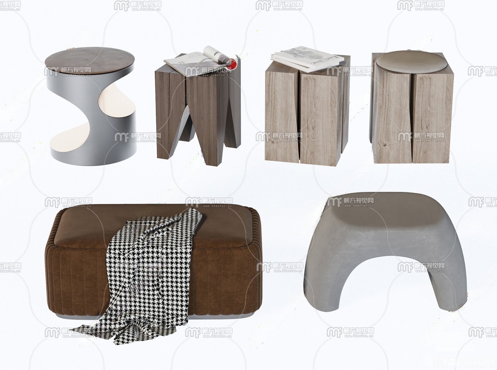 现代长凳圆凳矮凳3D模型(ID:0036598)