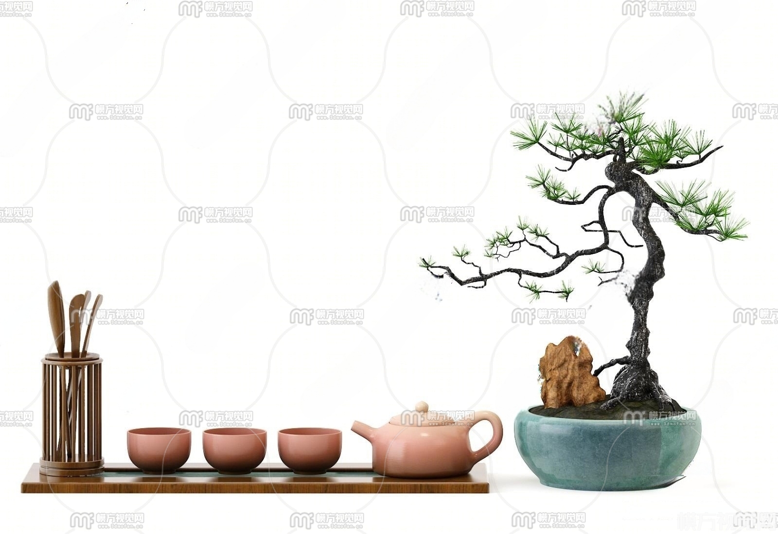 新中式茶具组合3D模型(ID:0036634)