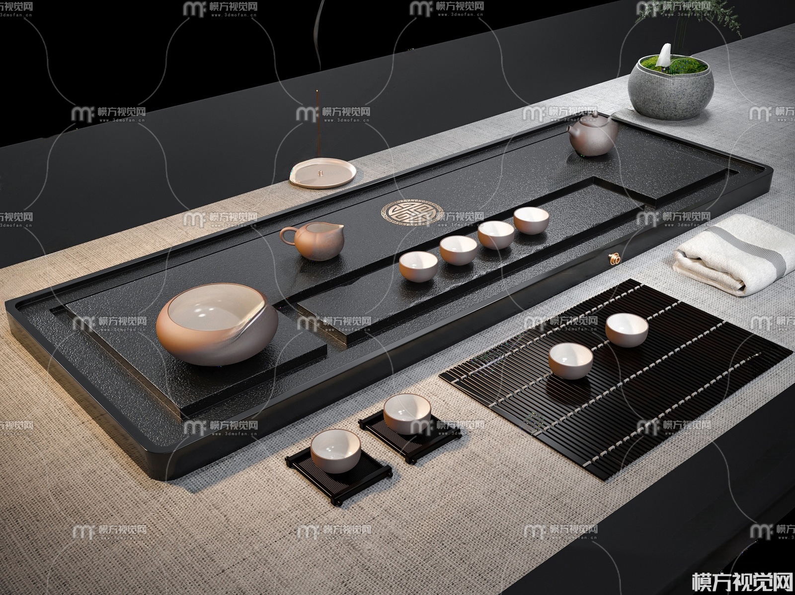 新中式茶具组合3D模型(ID:0036638)