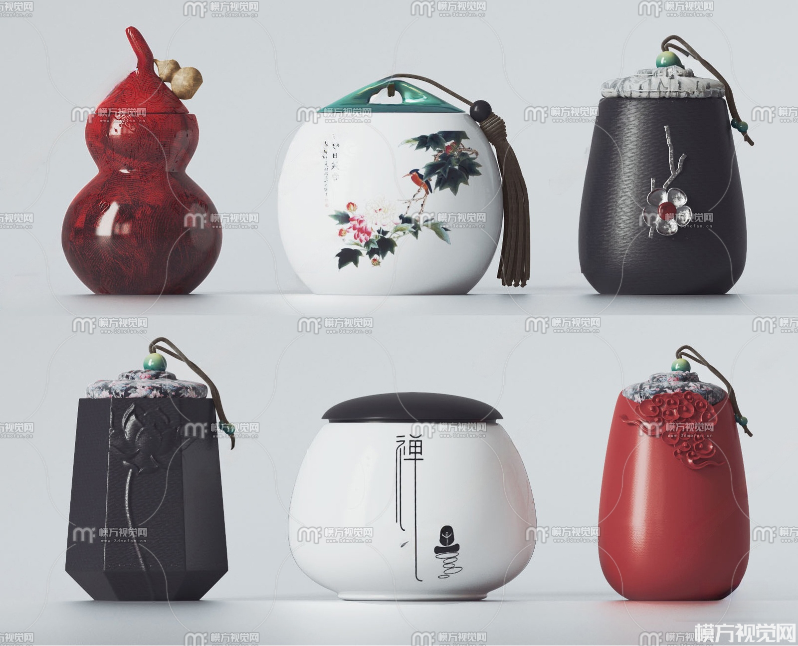 新中式茶叶罐陶罐3D模型(ID:0036641)