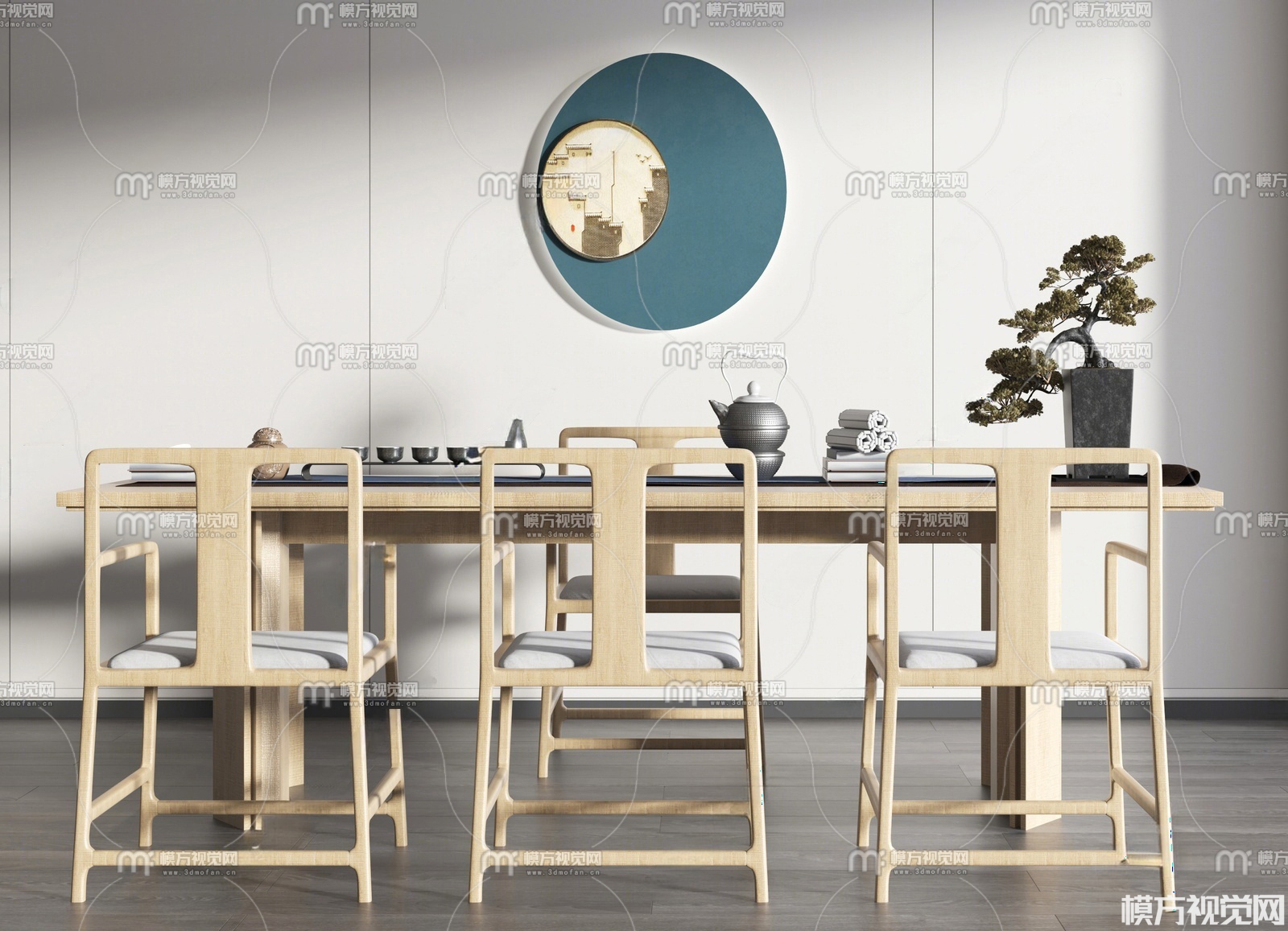 新中式茶桌椅组合3D模型(ID:0036652)