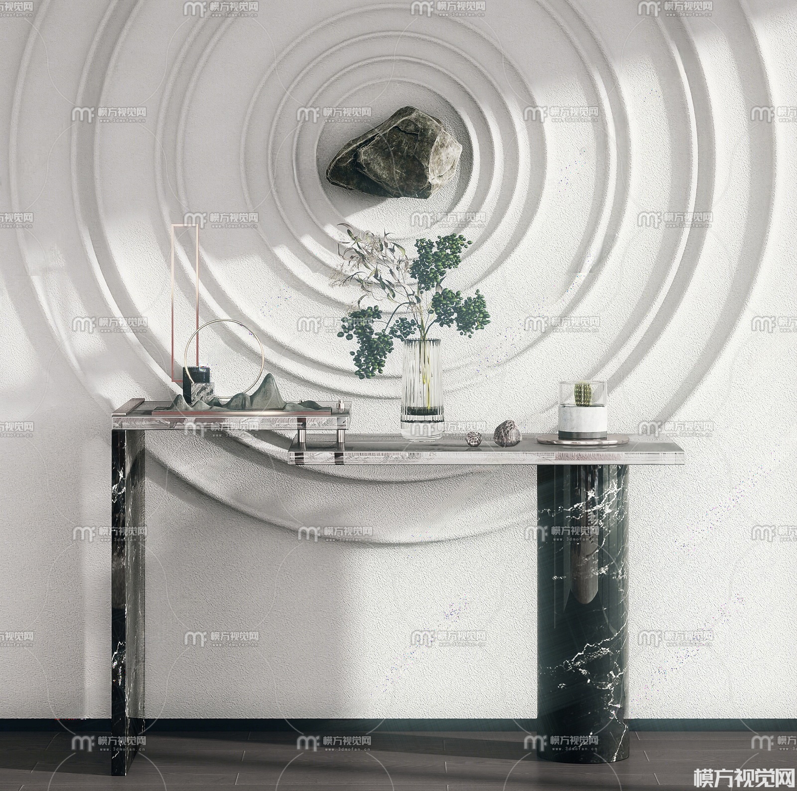 新中式端景条案3D模型(ID:0036689)