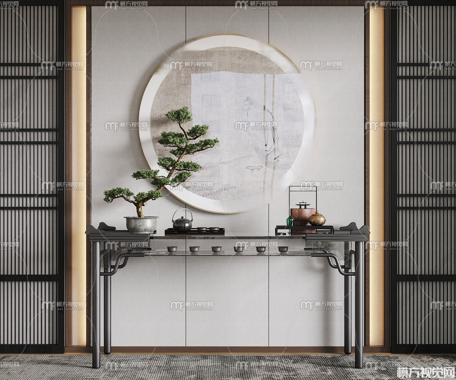 新中式实木端景条案3D模型(ID:0036698)