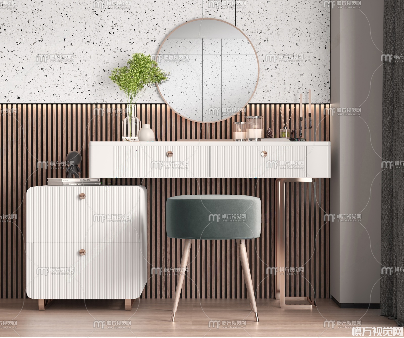 现代梳妆台组合3D模型(ID:0036752)