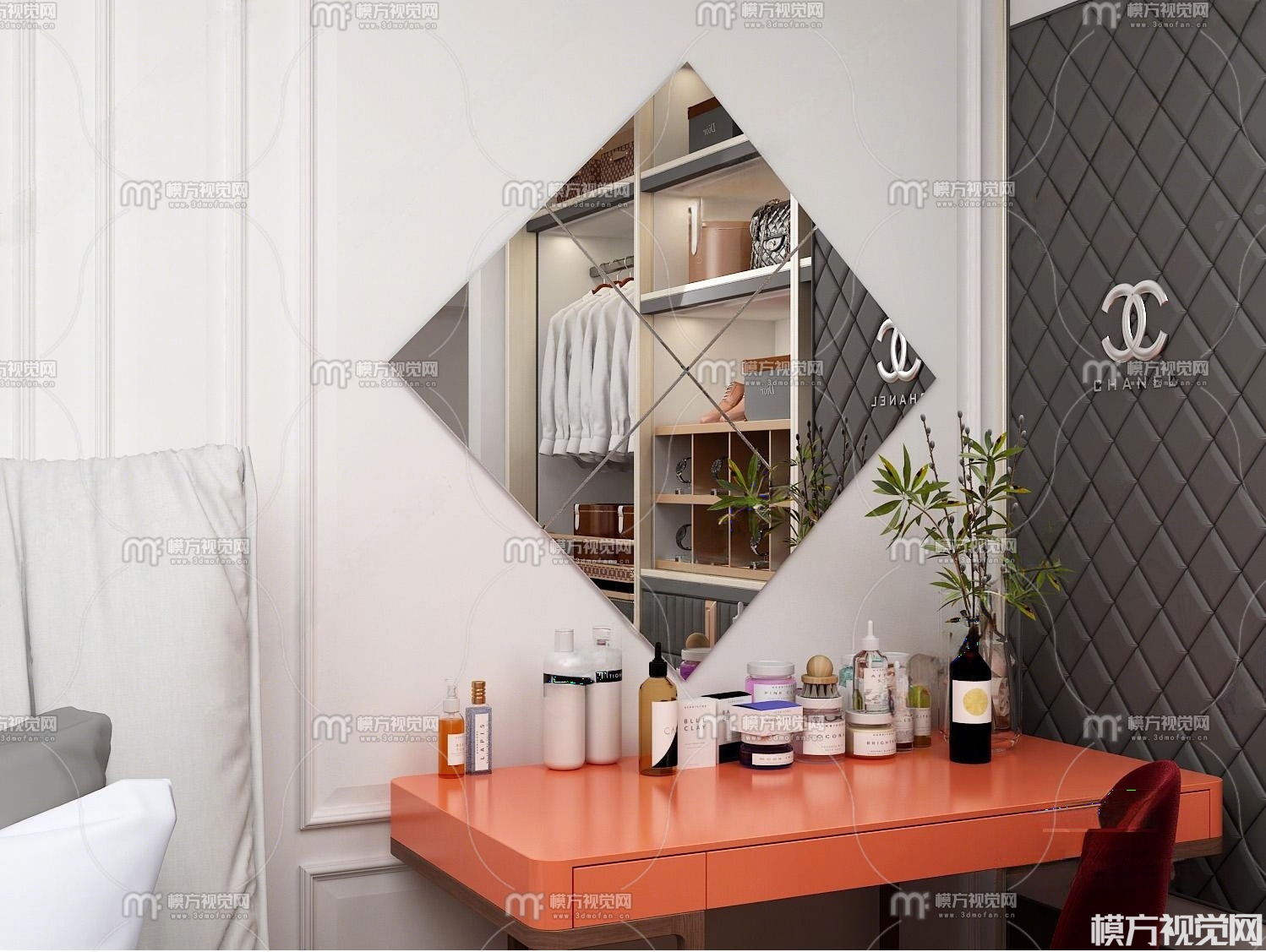 现代梳妆台组合3D模型(ID:0036759)