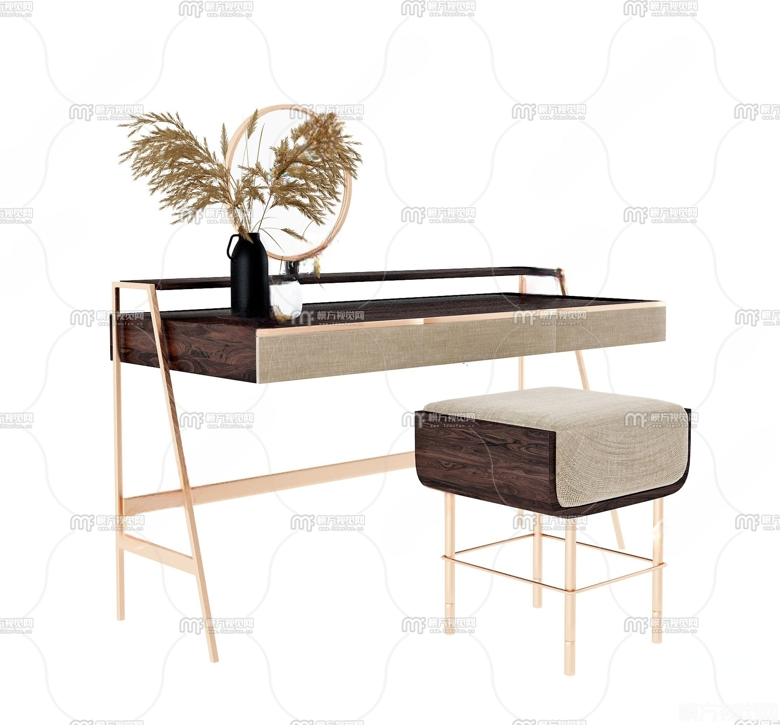 现代梳妆台妆椅组合3D模型(ID:0036764)