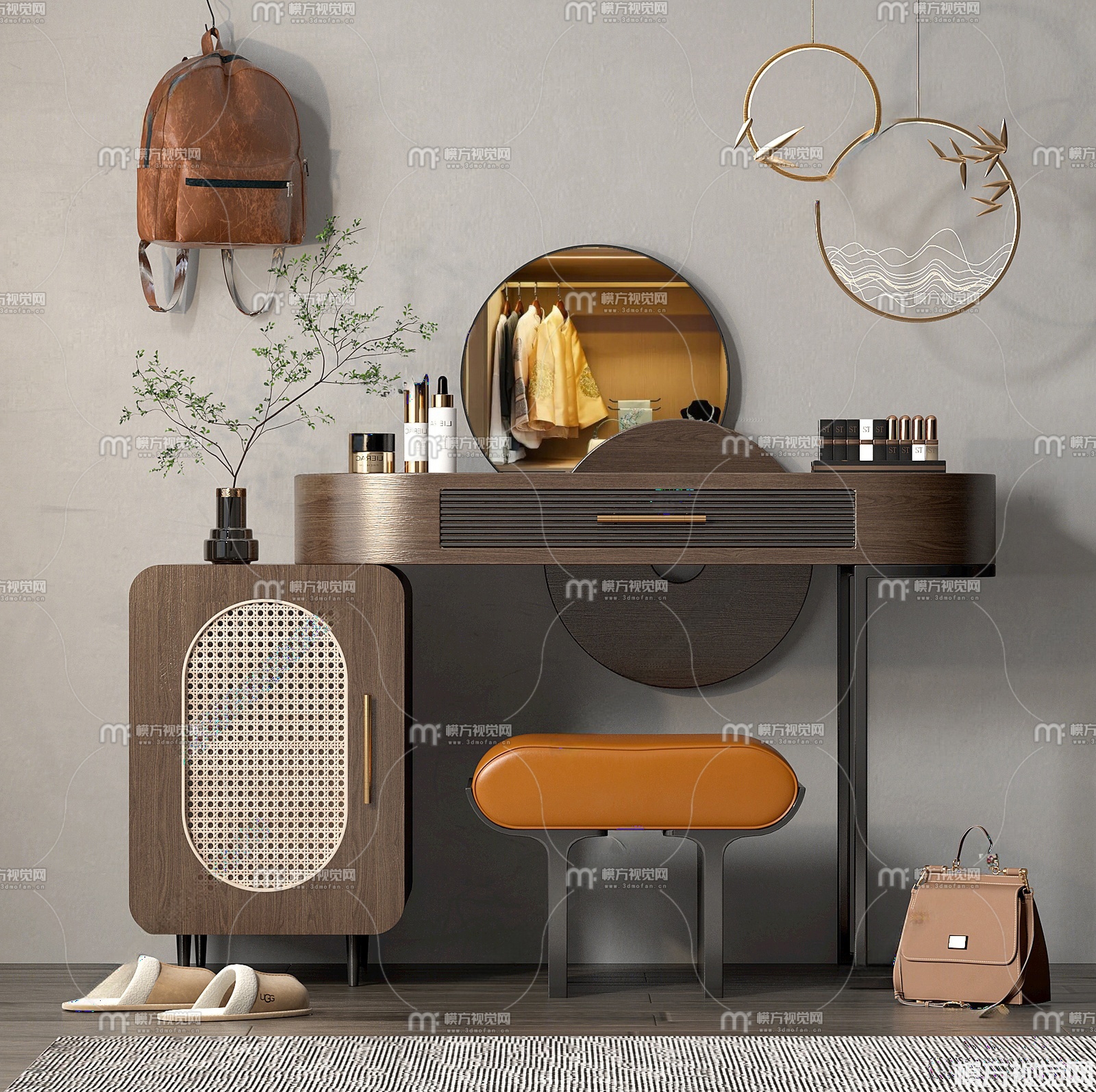 现代梳妆台妆椅组合3D模型(ID:0036768)
