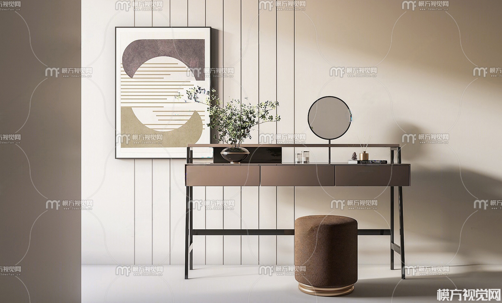 现代妆台妆椅组合3D模型(ID:0036777)