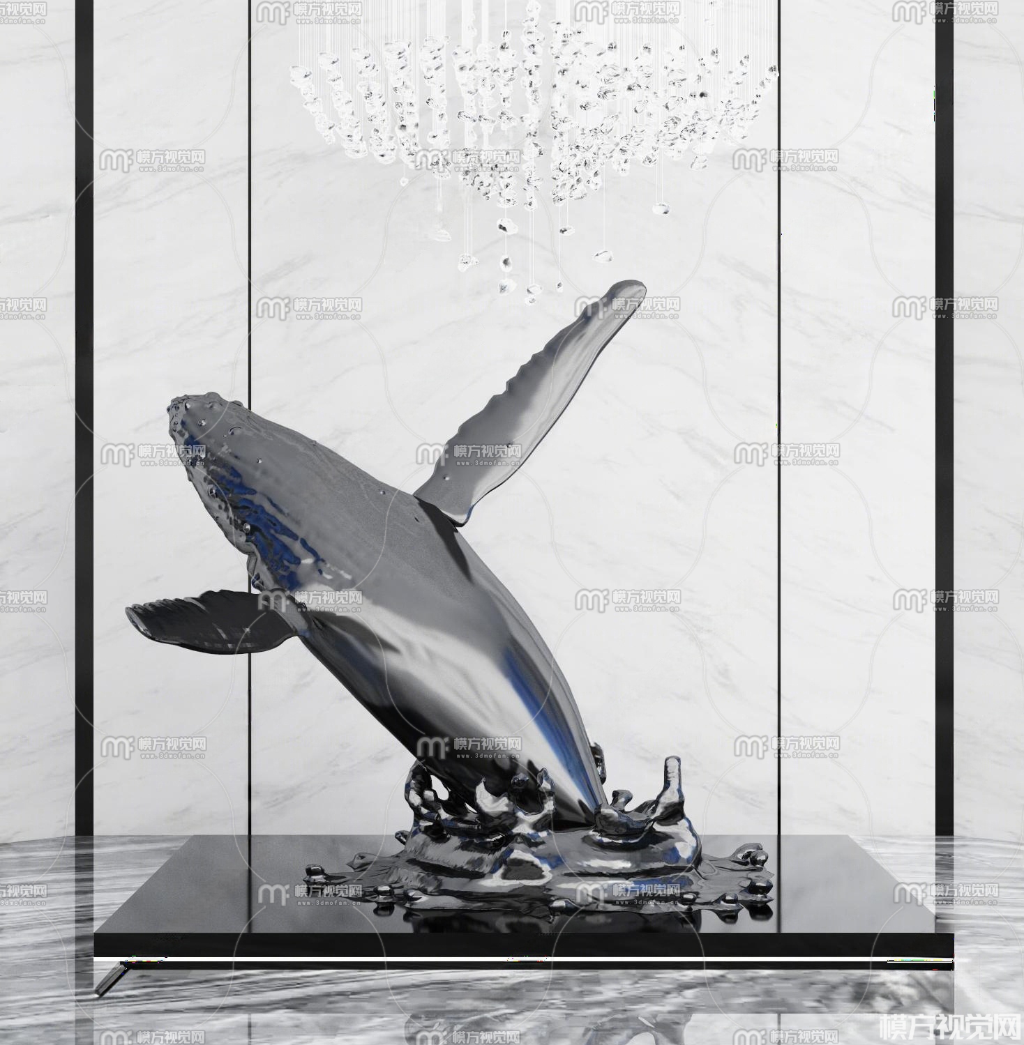 现代鲸鱼雕塑摆件3D模型(ID:0036791)
