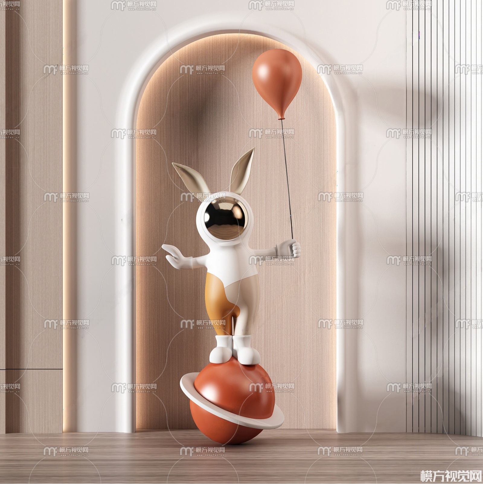 现代兔子雕塑摆件3D模型(ID:0036818)