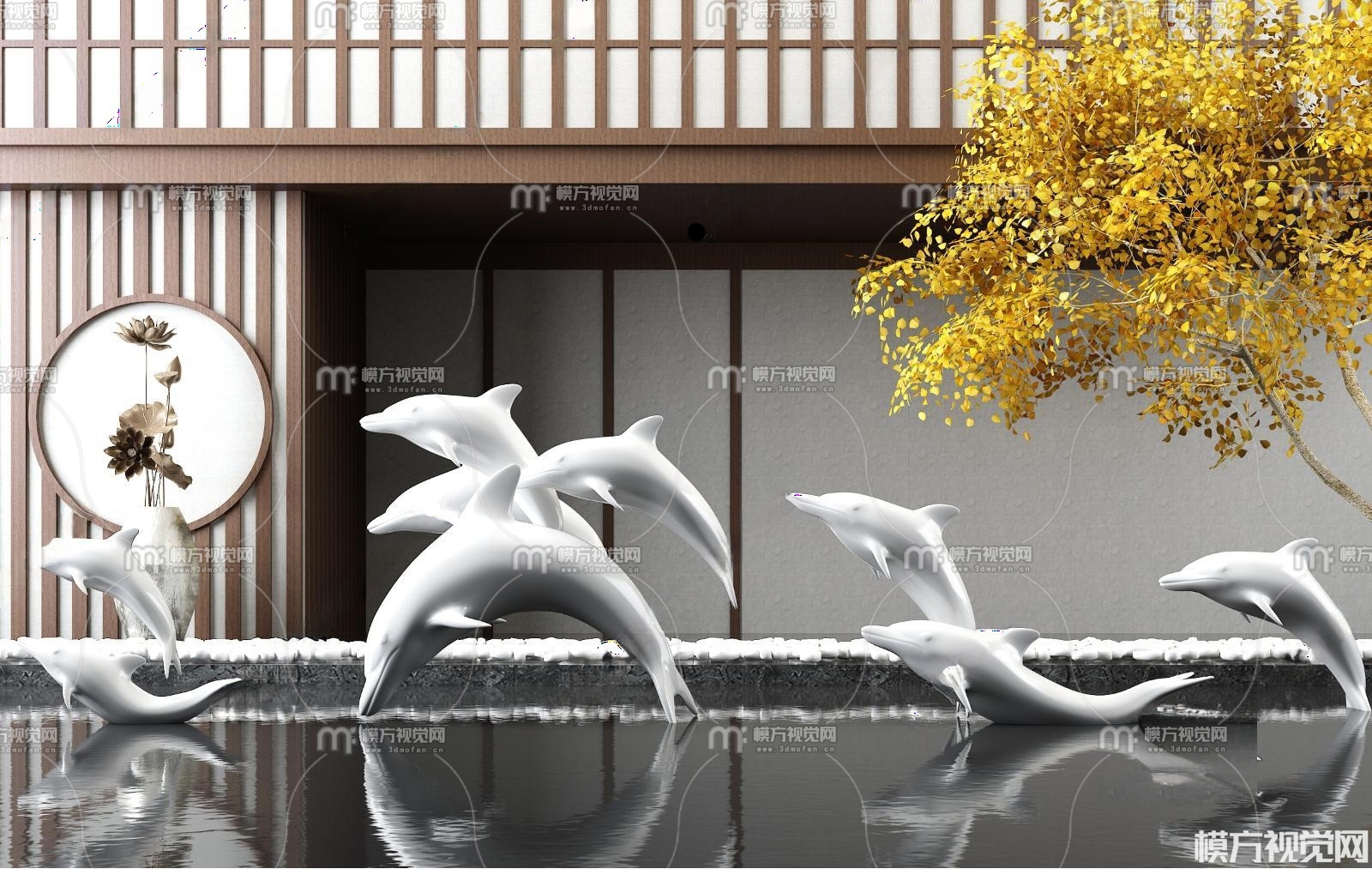 新中式海豚雕塑园林水景3D模型(ID:0036832)