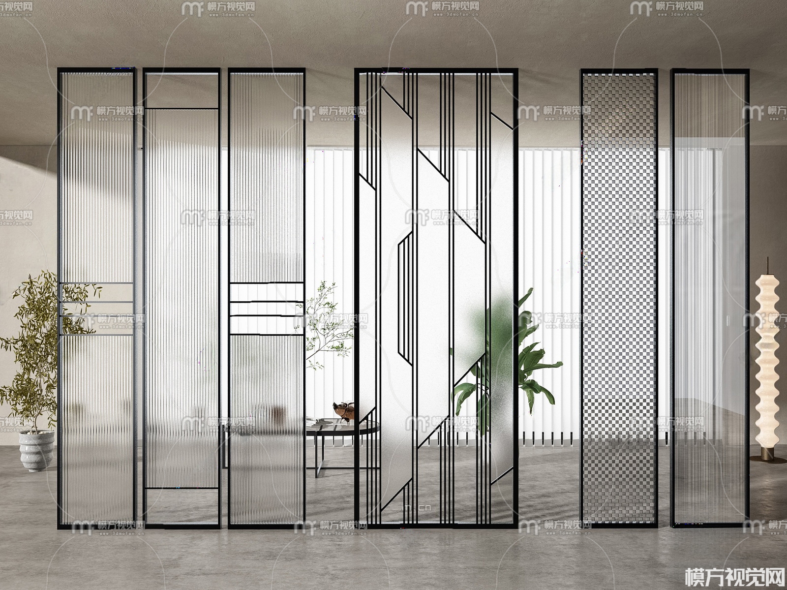 现代玻璃屏风 隔断组合3D模型(ID:0036850)